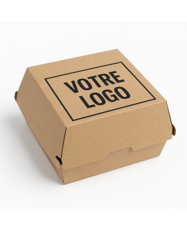 0.35 € l'unitéBoite burger en carton kraft ou blanc personnalisable avec le design de votre choix en 1 couleur. Minimum de commande de 300 unités.