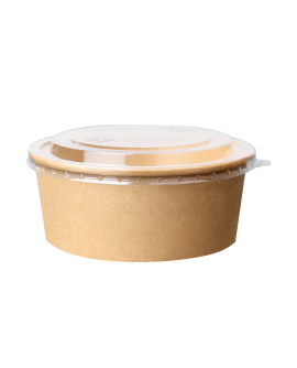Bol à salade en carton kraft de 1100ml (d.165xh.55mm), vendu avec un couvercle transparent en PET. Saladier 100% recyclable.