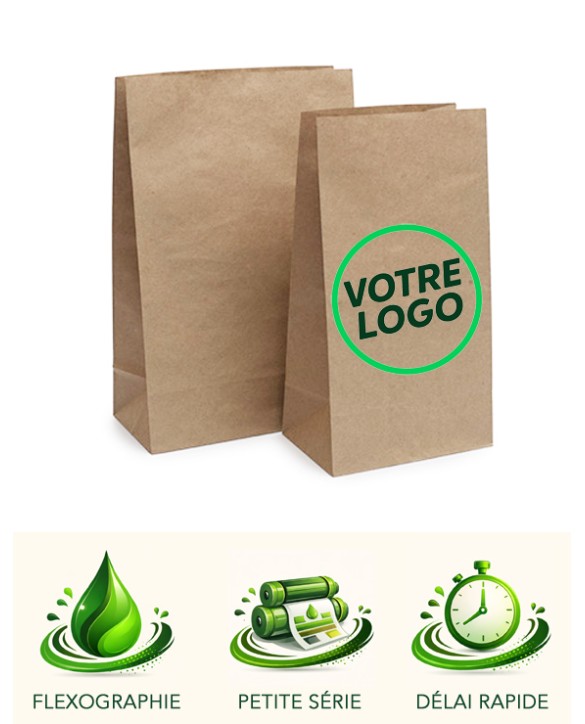 Sac kraft brun SOS sans poignée avec impression 1 ou 2 couleurs en recto seul ou en recto/verso. Deux tailles disponibles. Livraison rapide sous 5 semaines et minimum de commande à seulement 250 sacs. Prix dégressifs.