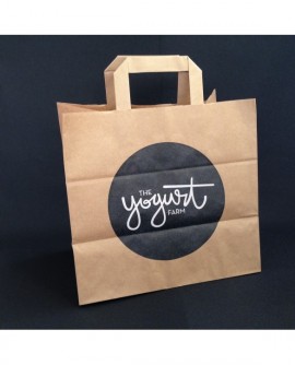 Sac en papier kraft brun ou blanc personnalisable de 1 à 4 couleurs. Sac avec poignées plates disponibles sur 10 tailles différentes.