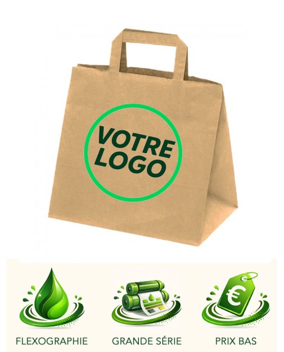 Idéal pour les restaurateurs, les traiteurs et la restauration rapide le sac en papier kraft à poignées plates imprimé deviendra un produit incontournable de votre enseigne. Indispensable outil pour la restauration à emporter le sac kraft personnalisé sera aussi un véritable un objet publicitaire pour votre enseigne ! Imprimer votre logo et le maximum d'informations sur votre sac imprimé, afin qu'un maximum de clients et de prospects voient votre logo et votre enseigne.
