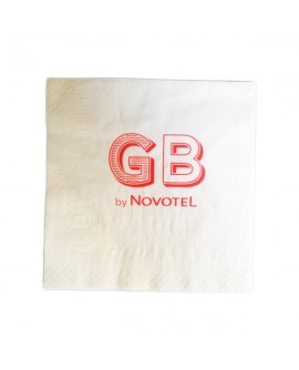 Serviette personnalisée en ouate 2 plis 33x33cm (16,5x16,5cm pliée). Impression d'un logo de 1 à 2 couleurs. Choix de 12 coloris différents.