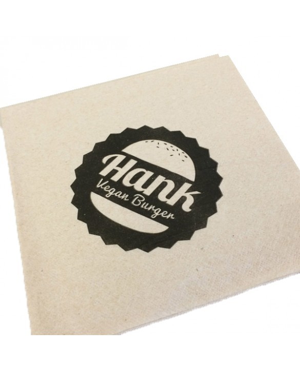Serviette personnalisée en ouate 2 plis 33x33cm (16,5x16,5cm pliée). Impression d'un logo de 1 à 2 couleurs. Choix de 12 coloris différents.
