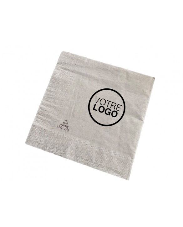 Serviette personnalisée en ouate 2 plis blanche ou kraft écologique en 30x30cm (15x15cm pliée).